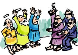 Not Be Left Alone Feedback from Last Week's Law & Order Edition Not too many written feedback but lots of new signups. Thanks to all who contribute their little comments every now and then. Here just a few of the best ones. --- Raoul From Gordon: By now, I suspect that everyone knows that laughter promotes good health and a better life for us all. If anything should happen to prevent me from receiving TGIF I would suffer a significant decrease in the quality of life. So keep up the good work. God is no doubt as pleased by your efforts on our behalf as we are. (And congratulations on Josh's entry to Brown University!) From Ed: Loved the drawings. do you ever choose a winning joke based on what would make an interesting artistic challenge for your illustrations? Sometimes. But it's usually if it's new. If the visual on my head is interesting and of course --- if it's funny! And to be honest, a lot has to do with my mood at the time. A joke can be really funny at one time and sometimes I wonder why I found them so funny. --- Raoul From Terry: